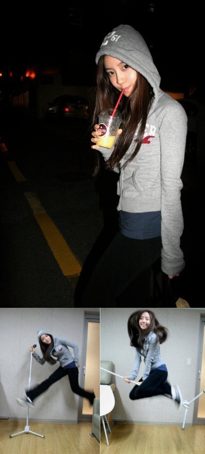 효민은 17일 오전 자신의 트위터에 "밤길은 위험하니까 재빨리 날아서 연습실로"라는 글과 함께 사진을 올렸다.
