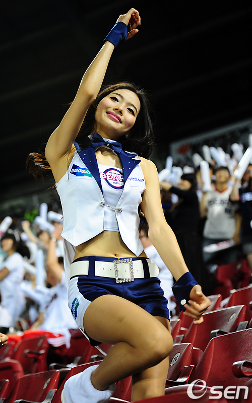 두산 치어리더들이 열띤 응원을 선보이고 있다. /jpnews@osen.co.kr