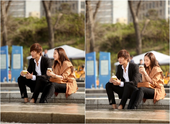 지난 3일 촬영이 진행된 서울 여의도 한강공원에서 이민호와 박민영은 그 어느 때보다 평화로운 데이트 장면을 촬영했다. 쏟아지는 물줄기를 온몸으로 맞은 두 사람이 따사로운 햇살 아래 몸을 말리며 향긋한 커피를 마시는 장면. 물줄기를 그대로 맞아 젖은 몸이 다소 불편할 수도 있는 상황이었지만 이민호와 박민영은 젖은 모습 그대로 자연스러움을 담아 촬영에 임했다.