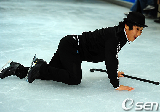 김병만이 빙판 위에서 화려한 안무를 선보이던 중 넘어져 당황해 하고 있다. /rumi@osen.co.kr