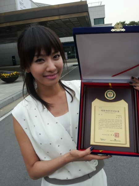 박정아는 26일 오전 서울 여의도 국회헌정기념관 대강당에서 열리는 제5회 2011 대한민국 나눔대상 시상식에서 여성가족부 장관상을 수상했다.