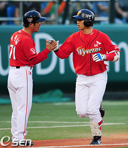 2회 선두타자 최동수가 볼넷으로 나가며 만들어진 무사 1루. 첫 타석에 등장한 최정은 류현진의 3구째 가운데 높은 112km 커브를 받아쳐 좌측으로 넘어가는 비거리 105m 선제 투런포를 날렸다. 시즌 5호 홈런. 이틀 연속 대포 아치를 그리며 부진을 씻고 확실한 부활을 알렸다.