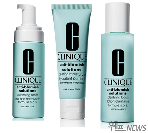 크리니크는 3단계로 나눈 안티 블레미쉬 라인으로 피부 트러블의 대표주자 여드름을 예방한다. 1단계, 세안과 피지조절을 해주는 '안티-블레미시 솔루션즈 클렌징 폼'은 과잉피지와 박테리아까지 제거하고, 피부 건조를 일으키지 않는 부드러운 세정 성분이 자극 없이 보습 밸런스를 맞춰 준다. 더불어 항 자극 효과로 뾰루지 발생을 억제하고, 깨끗하게 세정한다. 콜라너트, 해조 추출물은 피부 진정과 붉은 기를 완화한다.