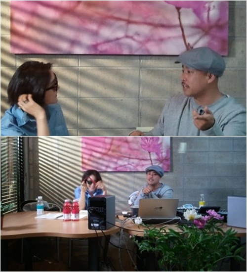 MBC 예능프로그램 '무한도전'의 김태호PD가 가수 바다와 길이 음악작업을 상의하는 모습을 공개했다.