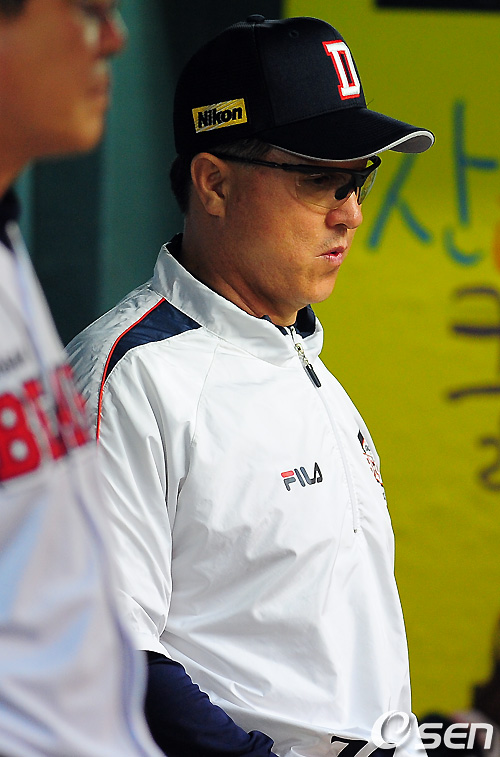 9회말 두산 김경문 감독이 생각에 잠긴 채 땅을 쳐다보고 있다. / soul1014@osen.co.kr