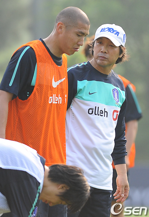 조광래 감독이 차두리와 이야기를 나누고 있다. /soul1014@osen.co.kr
