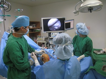 전재훈 원장은 “자신의 연골세포를 사용하기 때문에 이물질반응이나 거부반응 등의 부작용이 없으며 일단 재생되기만 하면 영구적으로 자신의 연골과 관절이 되기 때문에 수명을 걱정할 필요가 없다”며 “또한 손상된 연골을 재생시키고 더 이상의 손상이나 관절염의 진행을 막을 수 있어 초기 퇴행성관절염 환자에게 더없이 좋은 치료법”이라고 설명했다. /강진수 객원기자 osenlife@osen.co.kr <사진> 관절내시경 시술 장면.