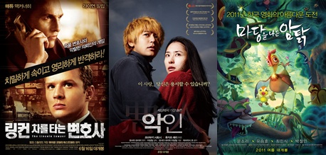 <사진> ‘링컨 차를 타는 변호사’, ‘악인’, ‘마당을 나온 암탉’ 포스터.
