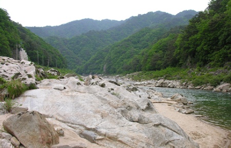 인제 내린천은 양양군에 있는 복룡산에서 생겨나 소양강 상류 합강까지 40여km에 걸쳐 흐른다. 이곳에서는 여기저기 둥글둥글한 곡선미를 자랑하는 기반암들이 눈에 띈다. 게다가 곳곳에 움푹 패인 포트홀을 볼 수 있다. 기반암의 오목한 부분에 들어간 자갈이나 모래가 물살을 따라 돌며 만들어낸 절경이다. 이러한 회전운동이 계속 되면 오목한 부분이 점점 깊게 파이면서 수미터에 이르는 구멍이 생기기도 한다. 내린천에서는 유유히 흐르는 물과 둥근 기반암들이 완만한 조화를 이룬다. 이맘때면 누드사진 촬영대회가 열린단다. 그러고 보니 자연의 곡선과 여체의 곡선이 꽤 닮은 듯 하다.