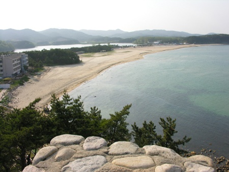 <사진2> 김일성 별장 3층 전망대에서 내려다 본 화진포 해수욕장 풍경.
