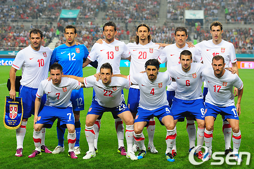 경기에 앞서 세르비아 선발 선수들이 포토타임을 갖고 있다./ jpnews@osen.co.kr