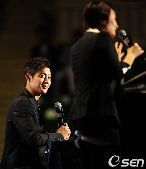 김현중이 쇼케이스에 앞서 간담회를 갖으며 사회자인 박경림을 바라보고 있다. / jpnews@osen.co.kr