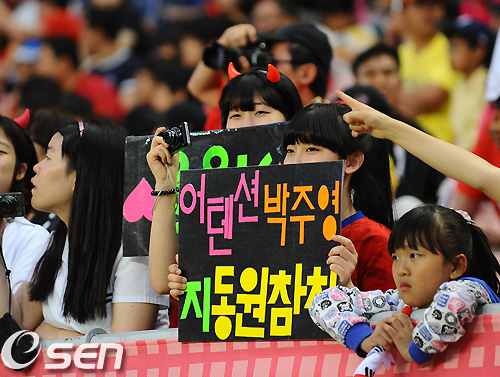 7일 오후 전주월드컵경기장서 열린 대한민국과 가나의 평가전 경기전 축구팬들이 이색 플랜카드를 들고 응원을 펼치고 있다.