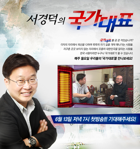 8일 KBS 인터넷뉴스는 오는 6월 13일부터 매주 월요일 저녁 '서경덕의 국가대표'라는 제목으로 각 분야의 명사들을 만나 인터뷰하는 토크쇼 프로그램을 방송한다고 밝혔다.