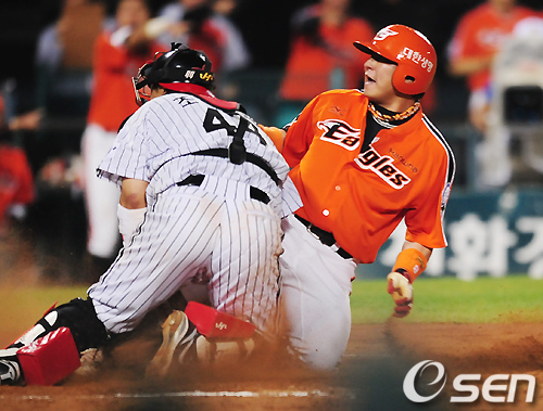 타석에는 이대수가 있었고 볼카운트 2-2에서 임찬규가 와인드업 포지션에 들어가면서 우물쭈물하자 거침없이 홈을 파고 들었다. 그러자 당황한 임찬규는 급히 축발을 빼는 바람에 보크가 인정되어야 하는 순간이었다. 그러나 너무나 갑작스런 일에 주심을 비롯한 4심 모두가 보크를 지적하지 못했고, 정원석인 홈에서 태그 아웃을 당하며 한화는 5-6으로 패하고 말았다.