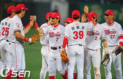 경기종료 후 KIA 선수들이 승리의 기쁨을 나누고 있다. / soul1014@osen.co.kr