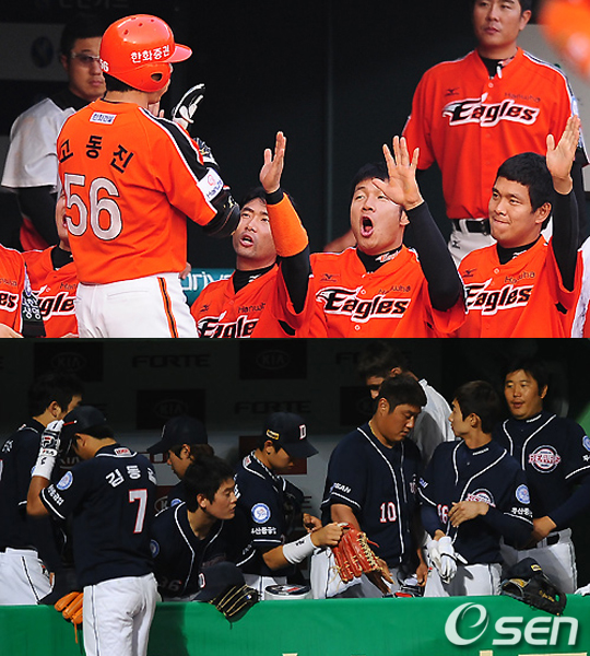 한화는 9일 잠실구장에서 열린 '2011 롯데카드 프로야구' LG와의 원정경기에서 4-1로 승리하며 2연패를 끊었다. 이로써 24승32패1무를 마크한 한화는 같은 시각 광주구장에서 KIA에게 2-3으로 패한 두산(22승30패2무)을 제치고 6위로 뛰어올랐다. 이날 경기 전까지 7위였던 한화는 승차는 없지만 승률에서 6리차로 앞서며 두산을 제치는데 성공했다.
