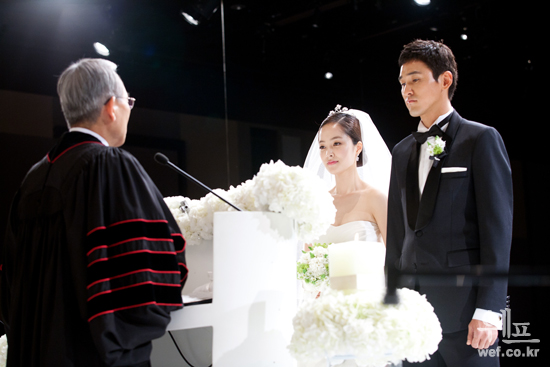 [웨프뉴스/OSEN=최고은 기자]국가대표 축구선수 이정수와 탤런트 한태윤이 오늘 오후 6시 30분 서울 장충동 신라호텔 다이너스티홀에서 화촉을 밝혔다.