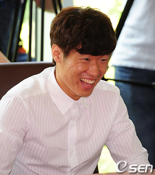 박지성이 히딩크 감독의 말에 환하게 웃고 있다./ rumi@osen.co.kr