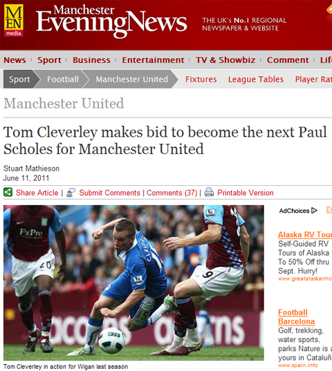 그러나 클레버리의 바람과 달리 맨유는 중원 미드필더를 외부에서 영입하려고 한다. 야심차게 영입한 영과 포지션이 겹치는 루이스 나니를 이용해 루카 모드리치(토튼햄)나 웨슬리 스네이더(인터 밀란)를 영입하려는 것.