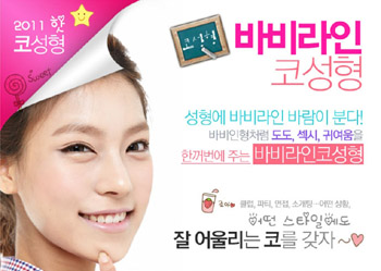 ‘바비라인 코성형’이란 코끝을 과도하게 올려 콧구멍이 보이던 모양(버선코)에서 바비인형처럼 콧대가 오뚝하면서 코끝은 살짝 올라간 반버선코 모양으로 만들어 주는 수술로 낮은코, 들창코, 매부리코 등을 개선하는 효과가 크다.