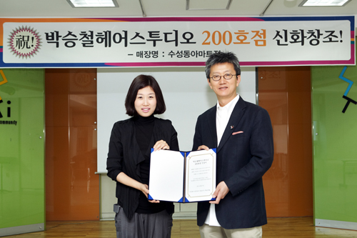 이 날 200호점 계약 체결식은 담당직원과 점주가 맨투맨으로 진행하는 기존 계약과는 다르게 박승철헤어스투디오 총괄 신유호부사장과 본사 임직원, 대구수성동아마트점의 점주가 참석한 아래 간단한 체결식을 갖고, 부사장과 점주가 사인을 진행한 후 200호점 인증서를 교환하는 순서로 진행됬다.