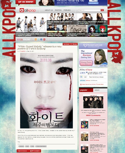 2011 첫 포문을 연 여름 공포영화 '화이트 : 저주의 멜로디'가 해외 한류 포털인 올케이팝닷컴에서 뜨거운 반응을 얻으며 한류 열풍에 동참하고 있는 것.