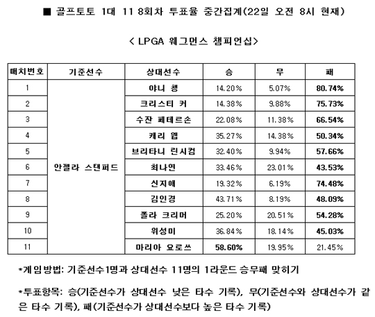 LPGA 웨그먼스 챔피언십 1라운드 대상 1대 11 8회차 투표율 중간집계