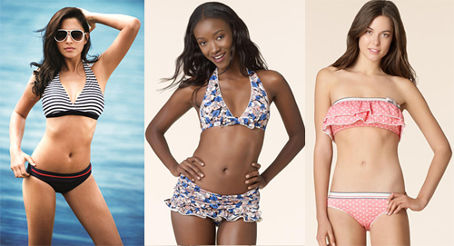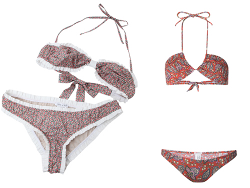 비키니를 발랄하게 연출하기 최고인 폴앤조의 '리시드 비키니'는 잔잔한 플라워프린트가 로맨틱하며, 홀터넥이 여성스러움을 자아낸다. 가슴부분에 셔링 디테일이 상체의 입체감을 살려주고, 플라워 프린트가 바디의 결점을 가려 슬림한 실루엣을 연출할 수 있다. 이외에도 화려한 레드컬러로 사로잡는 망고의 '스위트 콜렉션' 비키니는 다채로운 패턴들로 해변 가에서 눈길을 끌기 충분하다.