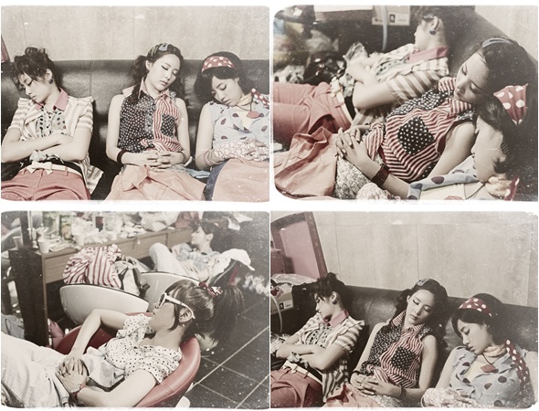 티아라는 지난 18, 19일 양일간 타이틀로 활동할 'Roly-Poly'의 뮤직비디오를 30시간 연속으로 촬영하는 과정에서, 피곤함에 한명씩 꿈나라로 가기 시작한 것이 사진으로 찍힌 것.
