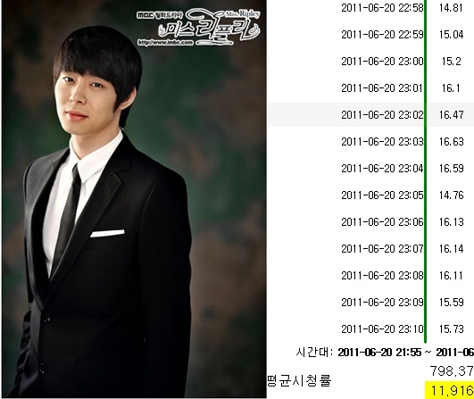 '미스 리플리'의 시간별 시청률 추이를 살펴보면 20일 방송된 7회분 후반부, 극중 박유천이 프러포즈하는 장면에서 순간 시청률이 16%가 훌쩍 넘으며 평균 시청률 11.9%보다 약 5% 포인트 높게 나온 것을 알 알 수 있다. 21일 방송분에서도 박유천이 등장할 때는 시청률이 15% 가까이 치솟으며 다른 신들과 차이를 나타냈다.