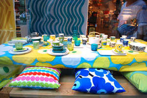 식기 제품들도 투명함과 흰색을 강조함으로써 여름이라는 모습을 잘 보여준다. 터키색 푸른색은 일반 의류 백화점에서도 볼 수 있는 트렌드 컬러인데, 인테리어에서도 빠른 유행 감각이 엿보인다.