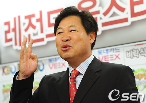 프로야구 30주년 레전드 올스타 베스트 10 선정 투표에서 최다 득표를 기록한 이만수 SK 2군 감독이 27일 오후 서울 도곡동 KBO 회관 기자실에서 기자회견을 갖고 있다.