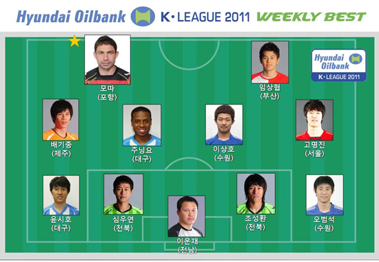 프로축구연맹(이하 연맹)은 28일 '현대오일뱅크 K리그 2011' 15라운드 주간 MVP와 베스트 11 등을 발표했다. 연맹은 15라운드 최고의 선수로 2득점 1도움을 기록한 모따를 선정했다. 모따는 지난 14라운드에서도 1득점 3도움을 기록하며 베스트 11에 뽑힌 바 있다.