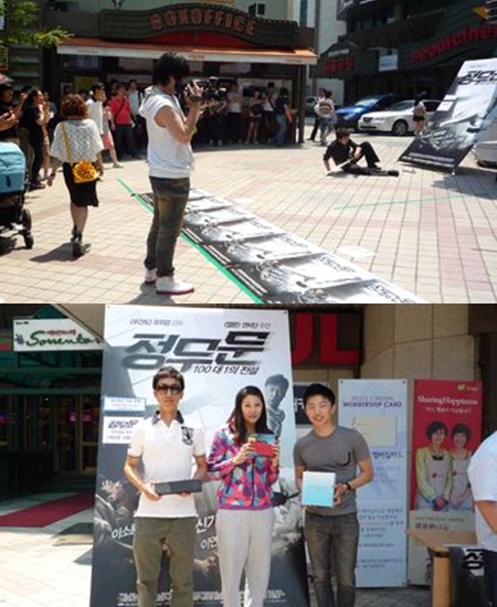 특히, 이벤트에 참가하는 전원에게 ‘정무문’의 예매권을 증정해, 남녀노소 구분 없이 많은 사람들이 참가해 시선을 끌었다. 이들은 참가자 별로 구호를 외치며 젓가락 격파, 다리 찢기, 기합소리 측정 등 이색 경기를 펼쳤다. 1등으로 뽑힌 참가자에게는 디지털 카메라가 증정되기도 했다.