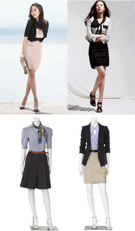 블랙과 화이트로 된 정장은 클래식한 느낌을 주며, 패션스타일에도 힘을 불어넣을 수 있다. 여름에 입을 수 있는 트위드 소재의 재킷은 고급스러운 스타일링을 연출하며, 펄 소재가 섞인 H라인의 티어트 스커트와 조화를 이뤄 단아한 여성미를 상견례에서 드러내기도 제격이다. 또한, 베이직하고 심플하게 입을 수 있는 블랙 테일러드 재킷과 베이지 스커트의 매치는 누구나 한 벌 쯤은 옷장 속에 가진 기본 스타일로 커리어우먼의 지적인 이미지도 심어줄 수 있다.