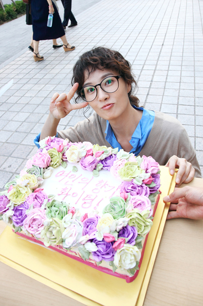2년 만에 안방 극장 복귀를 예고해 화제를 모으고 있는 김선아가 팬들이 준비한 ‘대형 꽃 케이크’를 선물 받고 함박 웃음을 지었다.