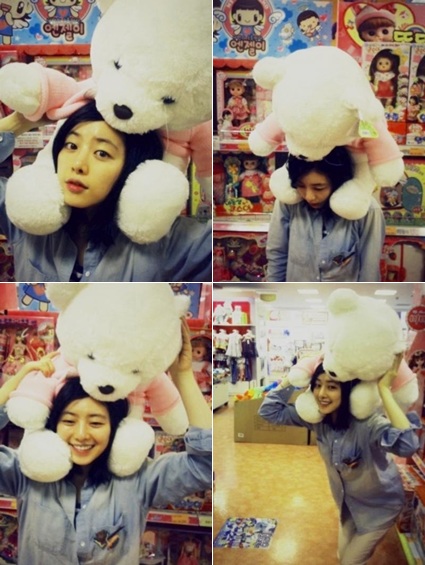 공개된 사진 속에 홍수아는 곰 인형을 목에 얹고 즐거워하고 있다. 특히 어떤 상황에서도 변치 않는 홍수아의 '슬픈 눈빛'이 눈에 띈다.