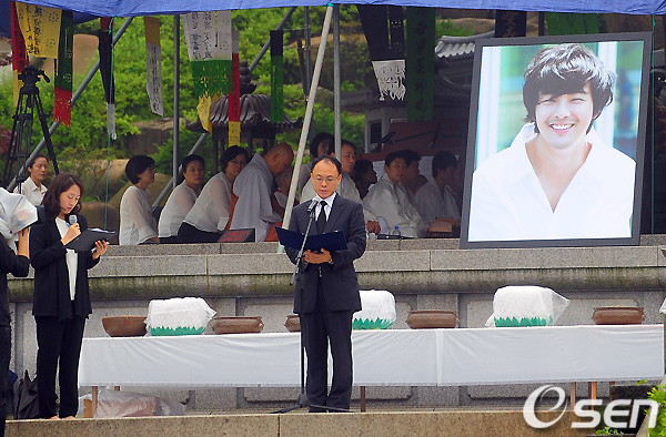 [OSEN=황미현 인턴기자] 故 박용하의 매형 김재형씨가 유가족을 대표해 1주기 추모제서 슬픔에 잠긴 추모사를 했다.