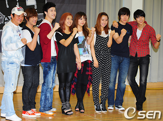 연습실에서 박준규 이윤혁 김수용 루나 유하나 장희영 한대규 이현이 포토타임을 갖고 있다./ rumi@osen.co.kr