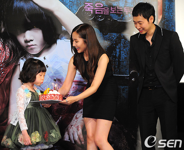 박민영과 김동욱이 이날 생일을 맞이한 김예론에게 생일케이크를 선물하고 있다. /soul1014@osen.co.kr