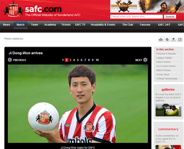 <사진> 선덜랜드 공식 홈페이지 캡처.