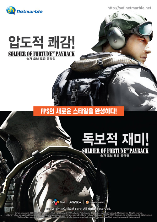 넷마블은 지난달 30일 보도자료를 통해 '솔저오브포춘'의 누적 이용자수가 100만을 돌파했다고 발표했다. 공개 서비스를 시작한지 두 달도 안된 '솔저오브포춘'이 현재 100만 이용자를 돌파하며 2011년을 강타할 FPS 대표 게임으로 기염을 토해냈다. 이는 부동의 순위를 지키고 있는 FPS 게임의 특성상 경이적인 기록으로 '솔저오브포춘'에 대한 이용자들의 기대와 관심이 반영된 것으로 평가된다.