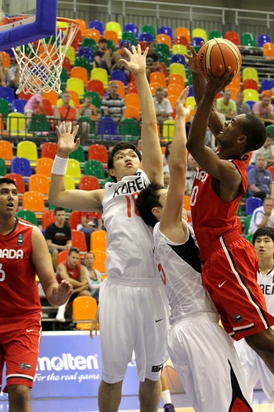 쿼터까지 76-82로 뒤진 한국은 223㎝의 장신 심 불라(24점·14리바운드)와 다이숀 피에르(23점·10리바운드)를 앞세운 캐나다의 고공 플레이를 극복하지 못했다.