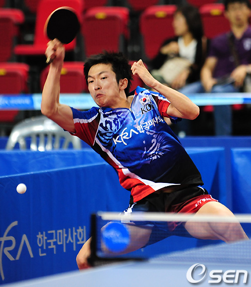 21세 이하 남자단식 1라운드에서 대한민국 정상은이 공격을 시도하고 있다. / sunday@osen.co.kr
