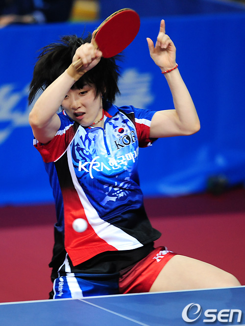 여자복식 1라운드에서 대한민국 서효원이 공격을 시도하고 있다. / sunday@osen.co.kr