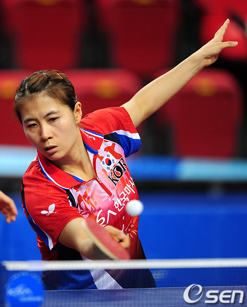 여자복식 1라운드에서 대한민국 김경아가 공격을 시도하고 있다. / sunday@osen.co.kr