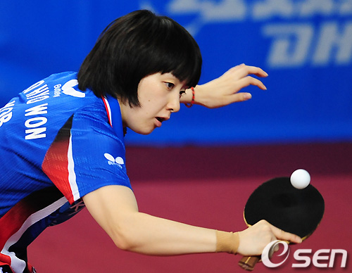 여자복식 1라운드에서 대한민국 서효원이 공격을 시도하고 있다. / sunday@osen.co.kr