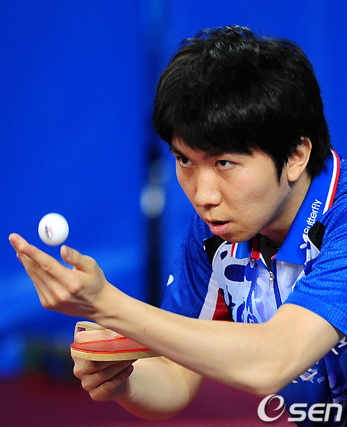 남자복식 1라운드에서 대한민국 유승민이 서브를 하고 있다. / sunday@osen.co.kr
