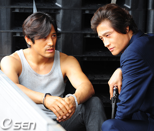 촬영중 박정학이 오지호에게 총으로 협박을 하고 있다./ rumi@osen.co.kr
